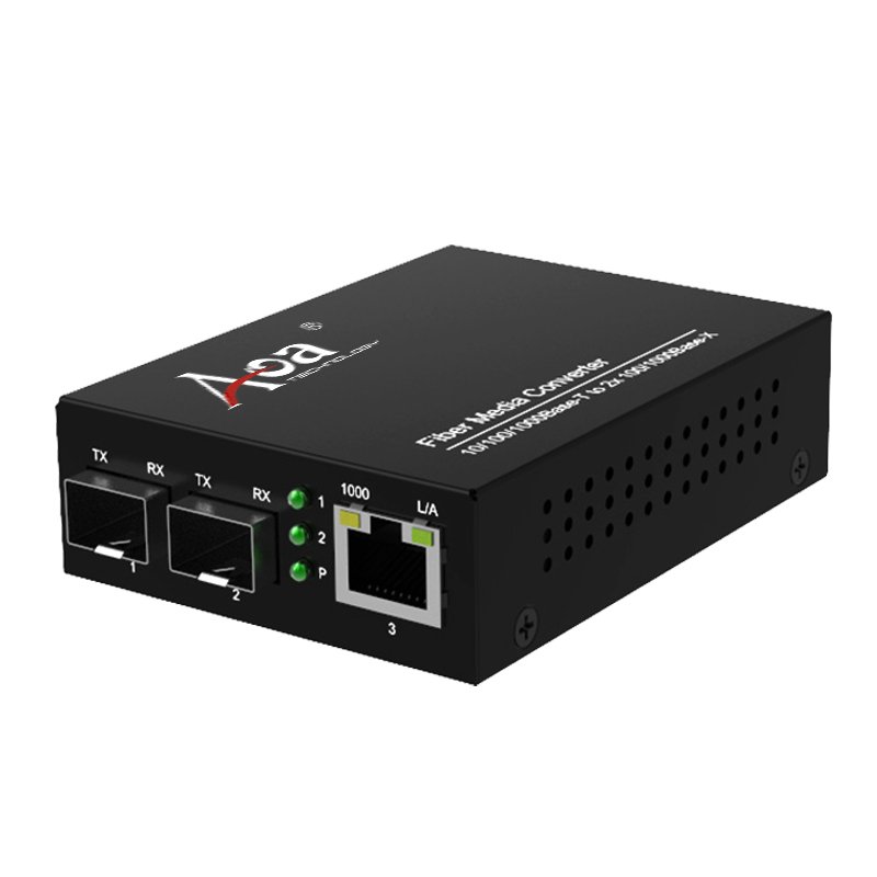 The AOM-3201 Gigabit Media Converter is engineered to provide a high-performance, stable solution for fiber-optic data transmission. It features one 10/100/1000Mbps auto-negotiation RJ45 Ethernet port and dual 100/1000Base-X SFP fiber ports, enabling seamless integration between fiber and copper networks. Designed with both switch mode and fiber link redundant mode, ensures continuous network service, even in the event of a fiber link failure. This makes it an ideal choice for mission-critical applications in enterprise networks, telecom infrastructure, and data centers.