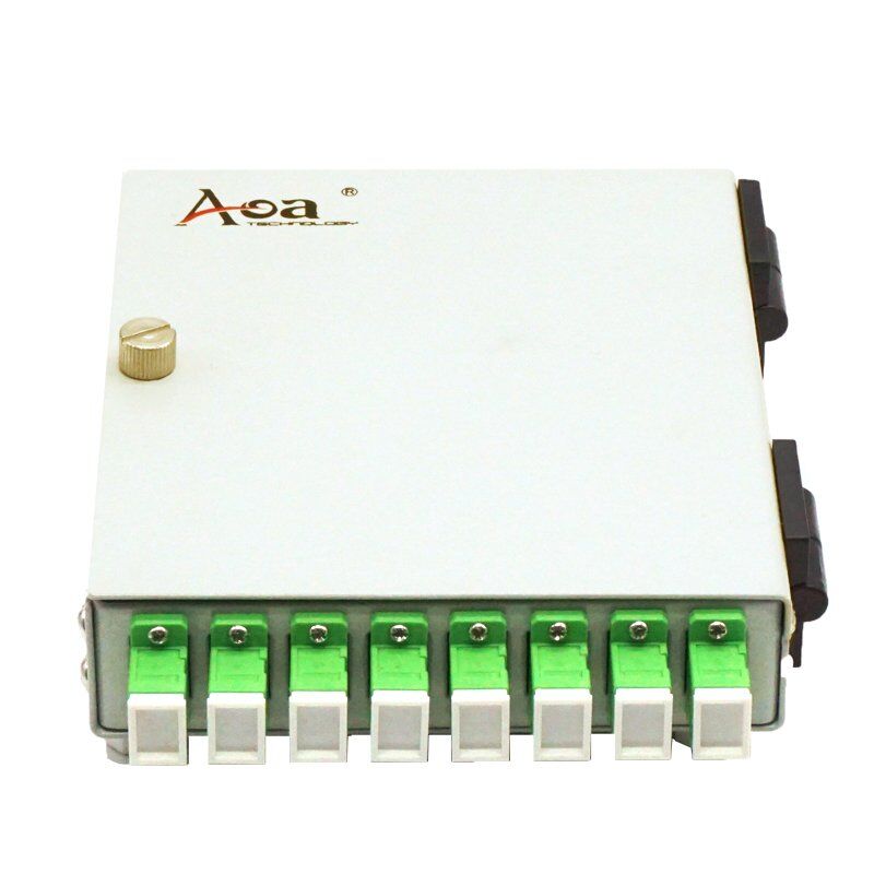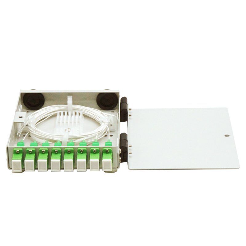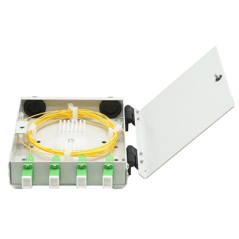 FTB-104A, FTB-108A Series fiber terminal box, also called FTTH terminal box, or distribution box, is used in the end termination of residential buildings and villas, to fix and splice with pigtails. There are 4 ports and 8 ports type box available. The wall-mounted and compact size design is convenient for installation. The fiber terminal box is in metallic materials, but is small in size and light weight; that is convenient for installation and saves the shipping charge.