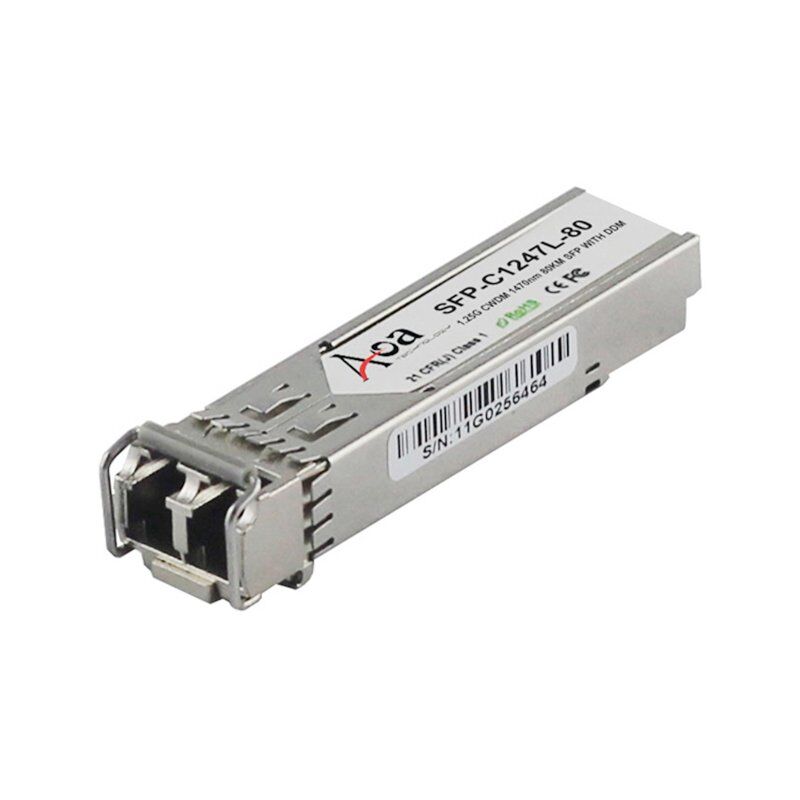 The SFP transceivers are high performance, cost effective modules supporting data-rate of 1.25Gbps and 80km transmission distance with SMF.